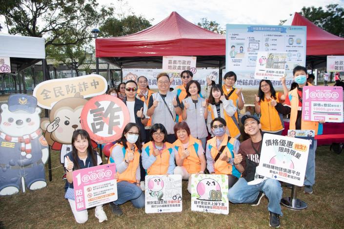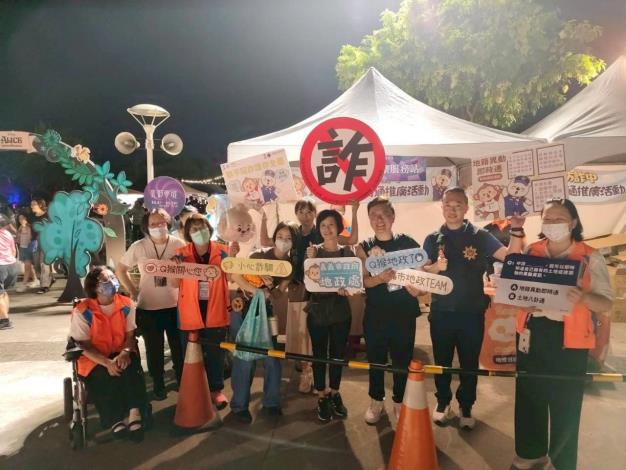 為持續提升全民防詐意識,地政事務所、地政處與警察局合作,在「光織影舞-光影夢境開幕日」活動會場入口共同設置 「猴熊聯手防詐中」宣導攤位,推廣「地籍異動即時通」、「165打詐儀錶板」及有獎徵答小遊戲,將防詐知識寓教於樂。